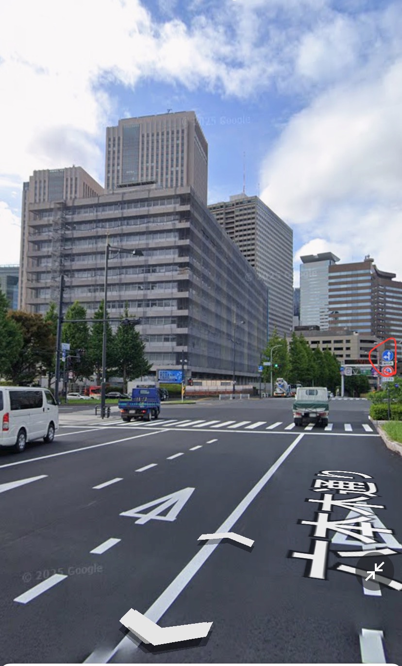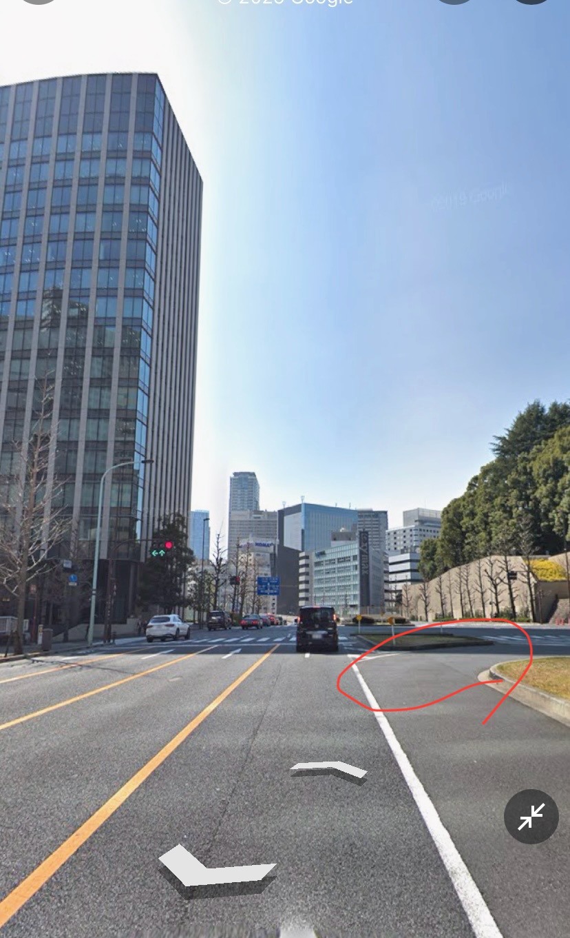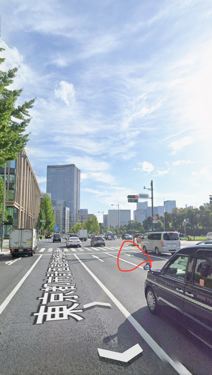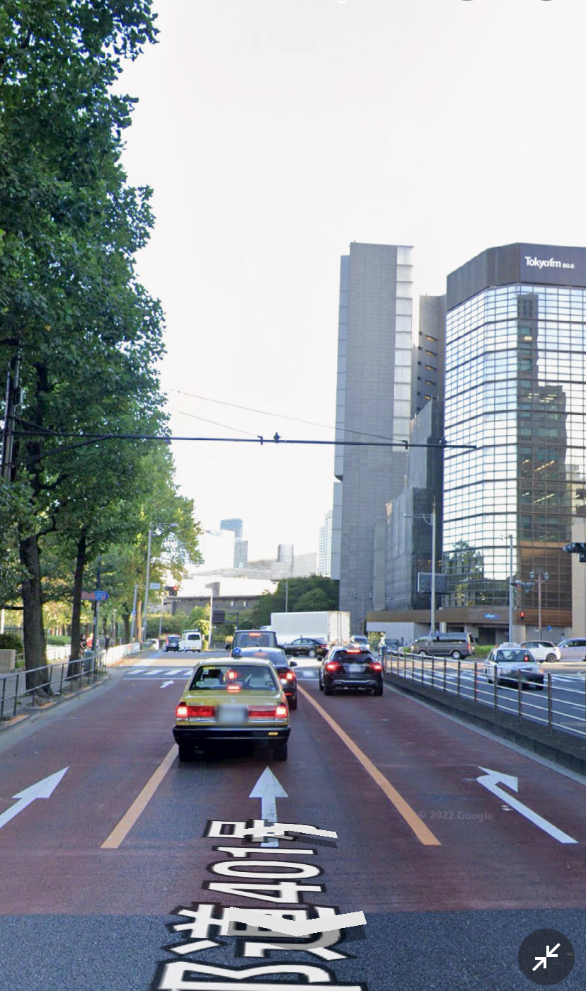 上記画像は、日比谷通りを芝公園側から大手町方面へ走っている様子ですが、この画像でいうと、
