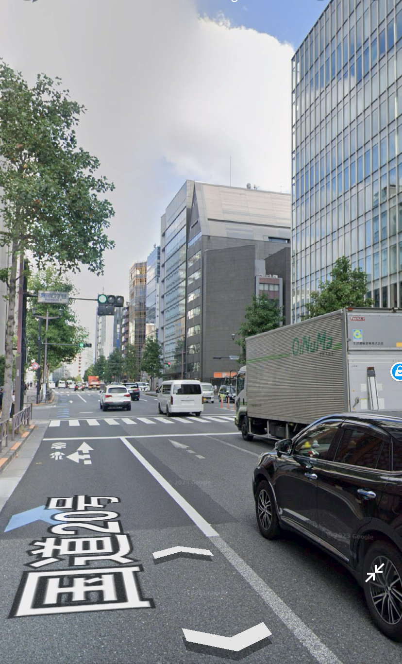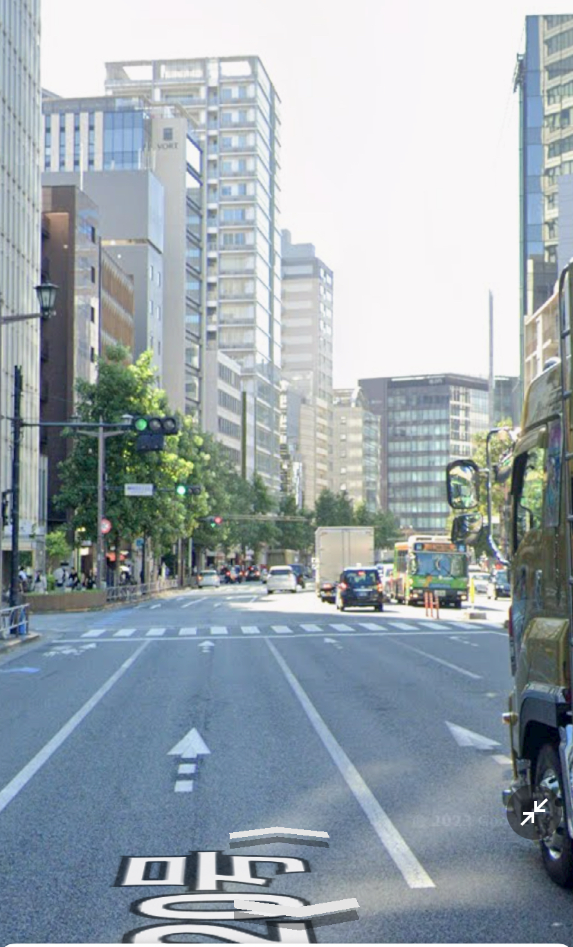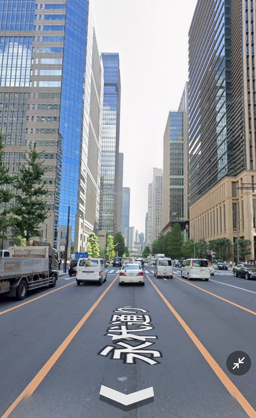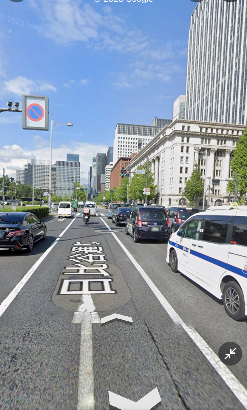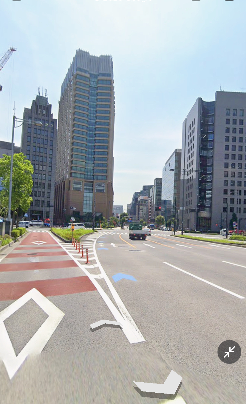 上記画像は、日比谷通りを芝公園側から大手町方面へ走っている様子ですが、この画像でいうと、