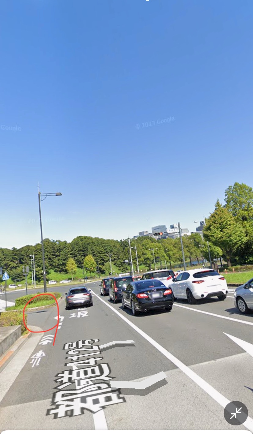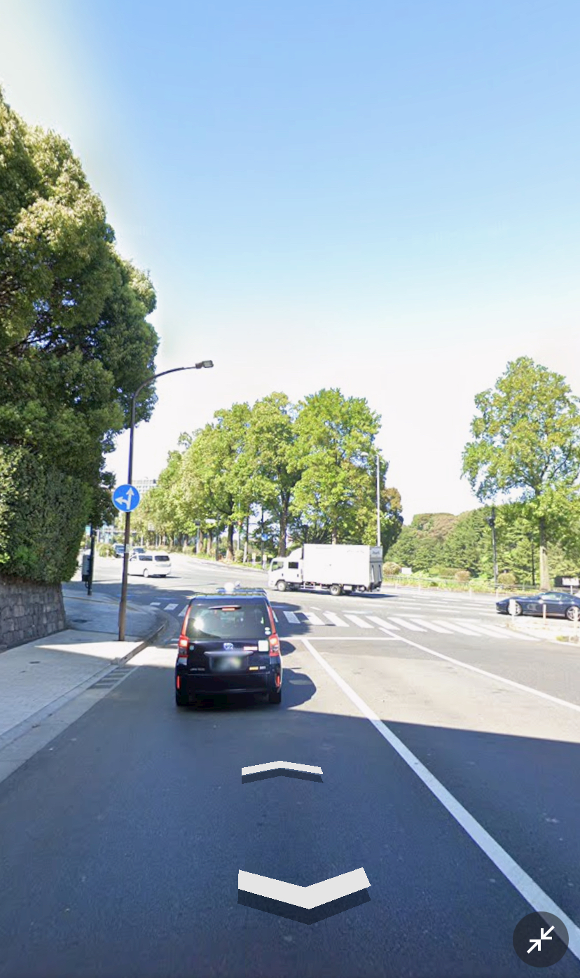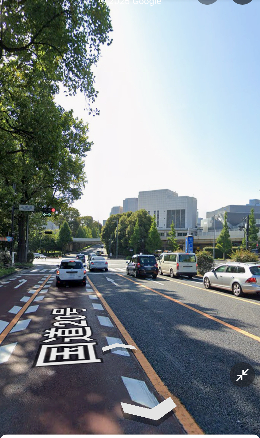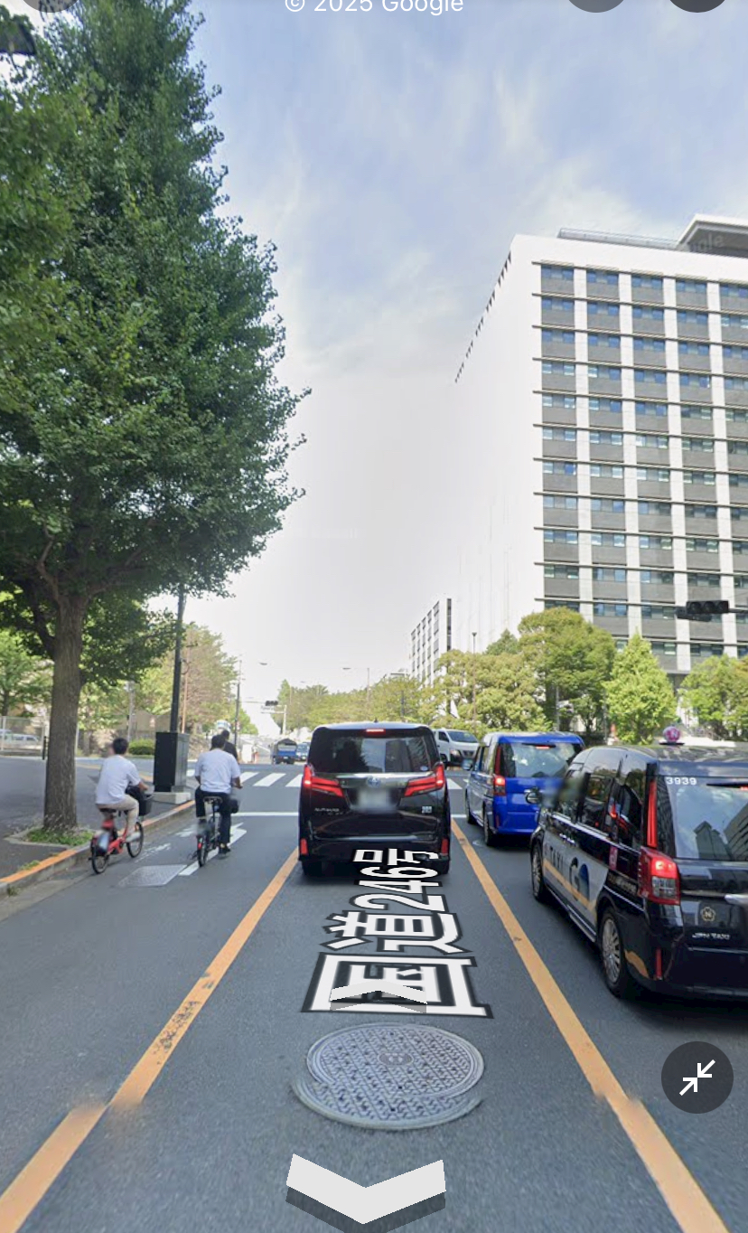 上記画像は、日比谷通りを芝公園側から大手町方面へ走っている様子ですが、この画像でいうと、