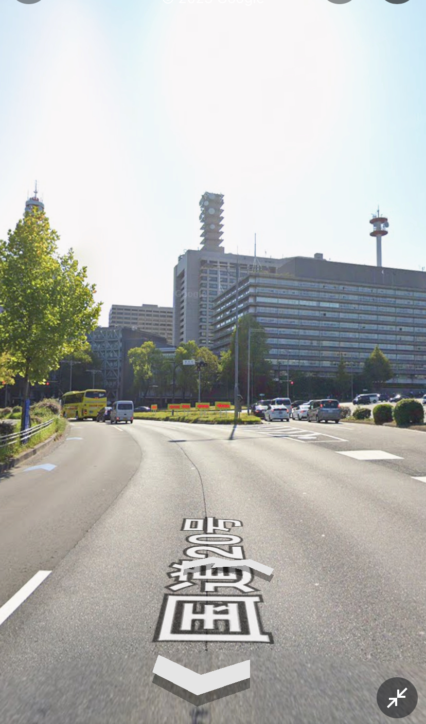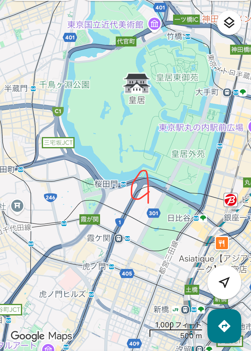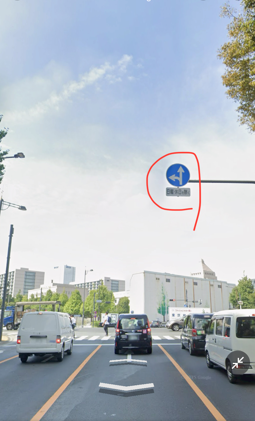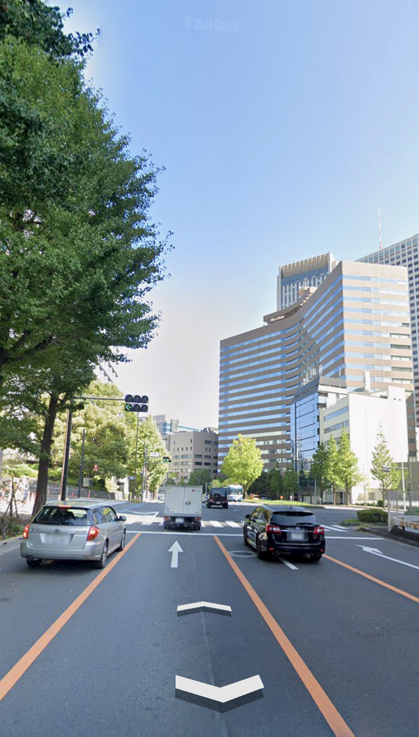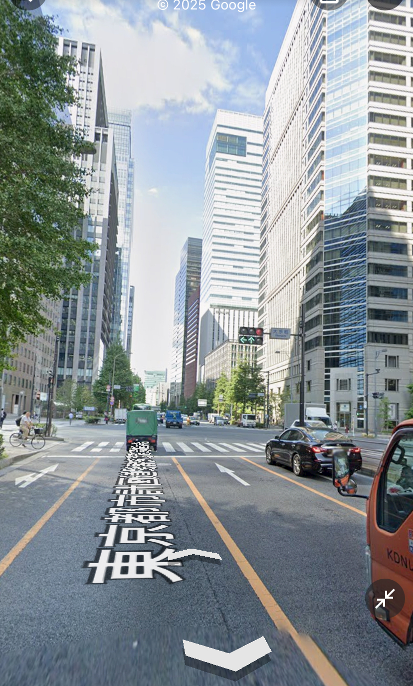 上記画像は、日比谷通りを芝公園側から大手町方面へ走っている様子ですが、この画像でいうと、