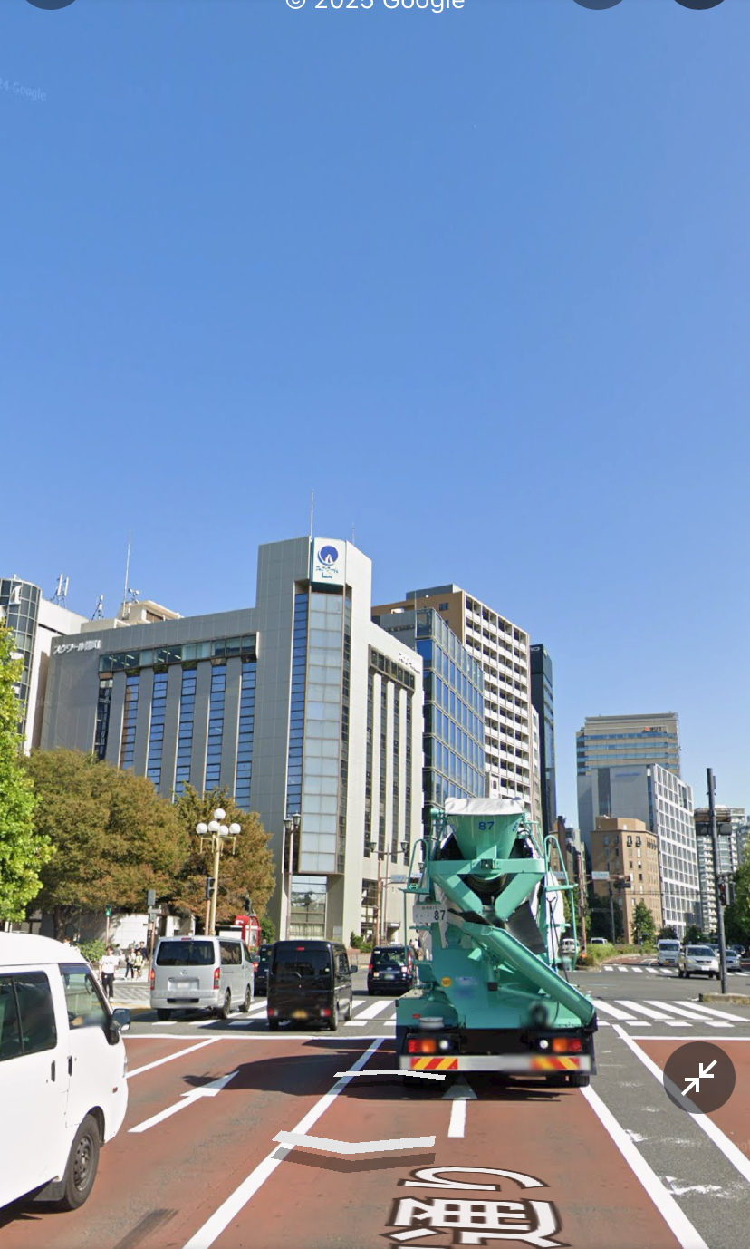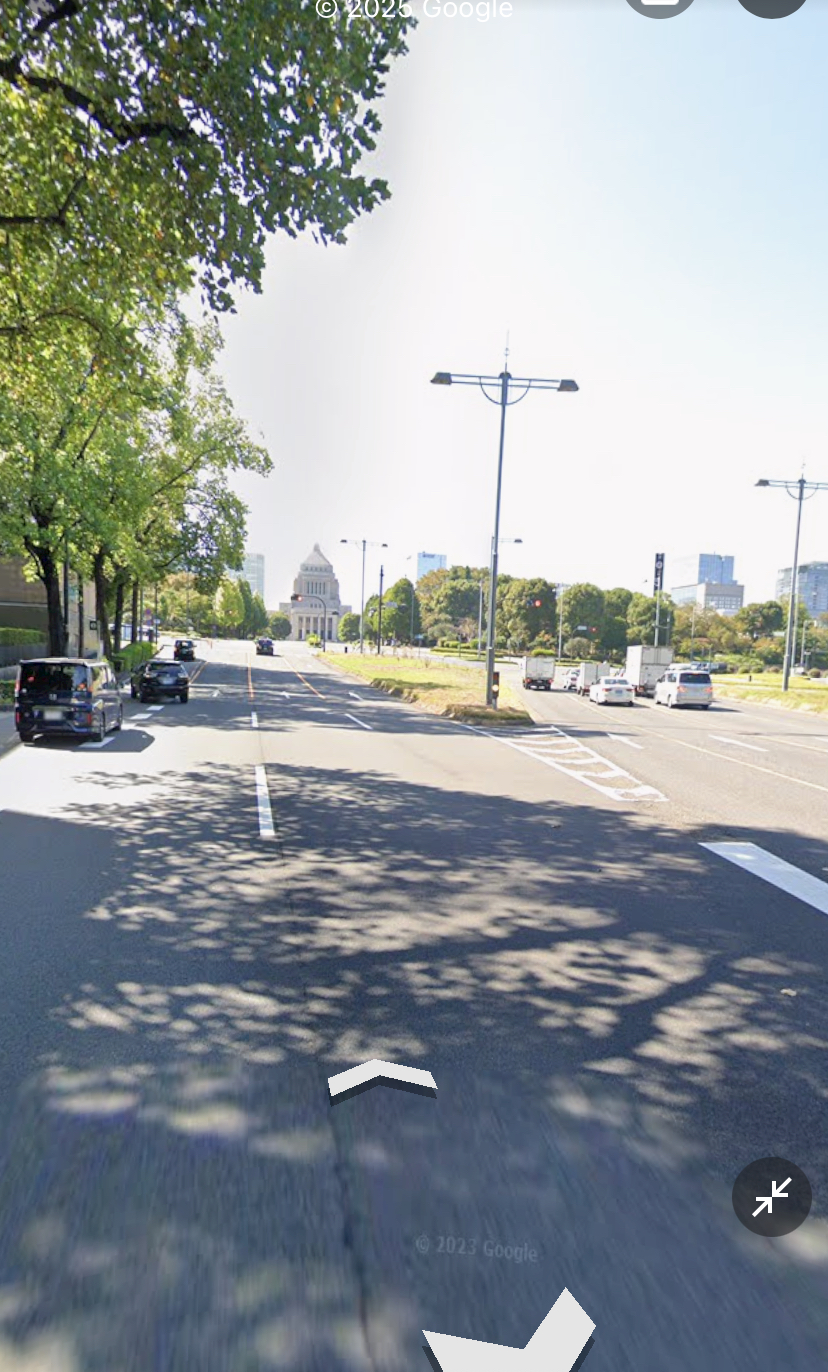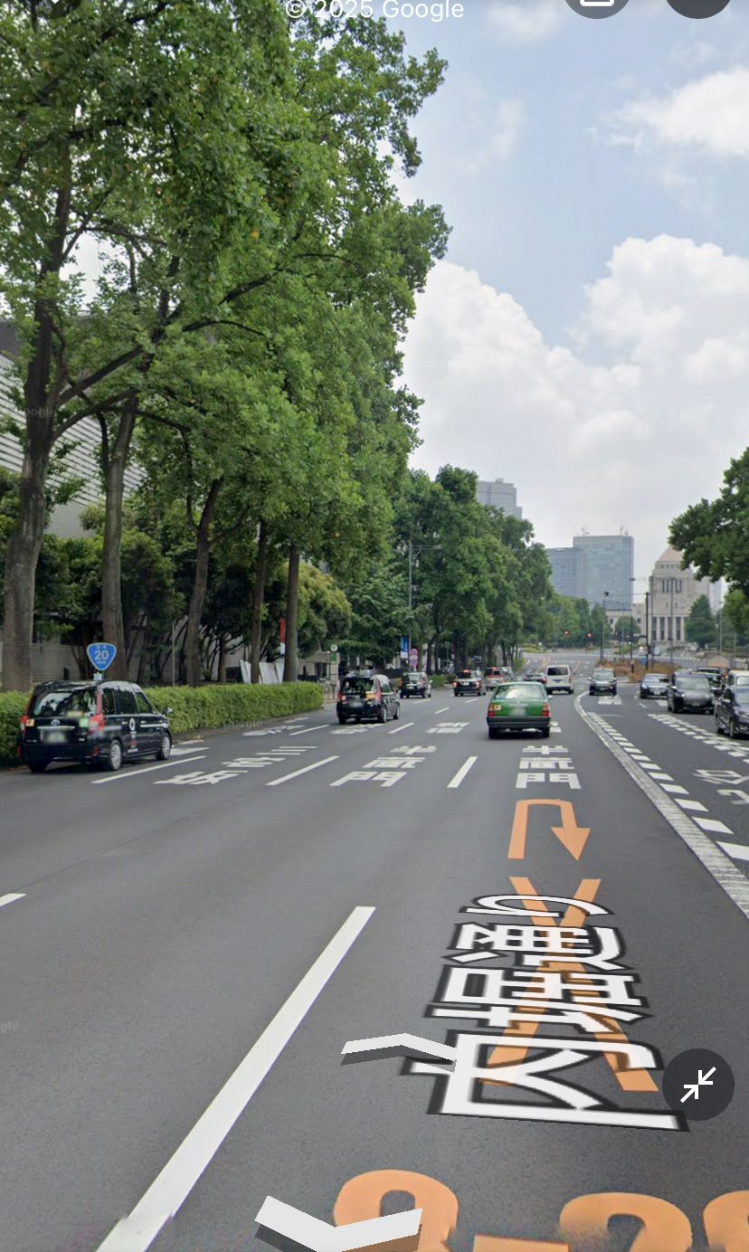 上記画像は、国会通りの延長線を内幸町側から新橋方面へ走っている様子ですが、この画像でいうと、