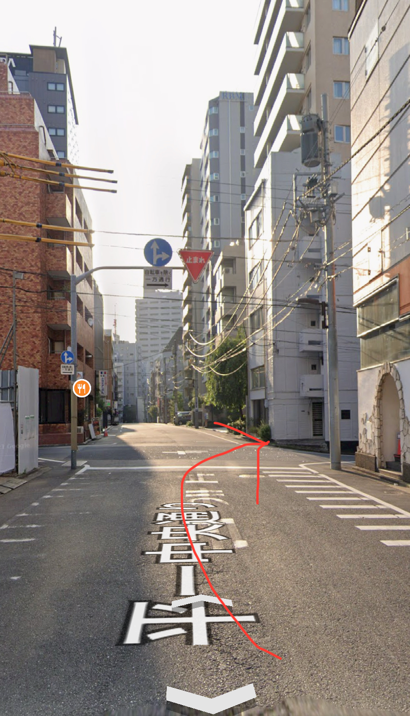 - 左折して溜池方面に行きたい場合はそのまま直進する