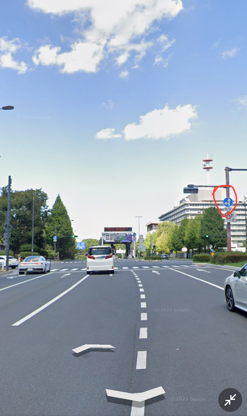ここはシンプルな3車線となっていますが、8時〜20時は右折が禁止となっていますのでご注意ください。