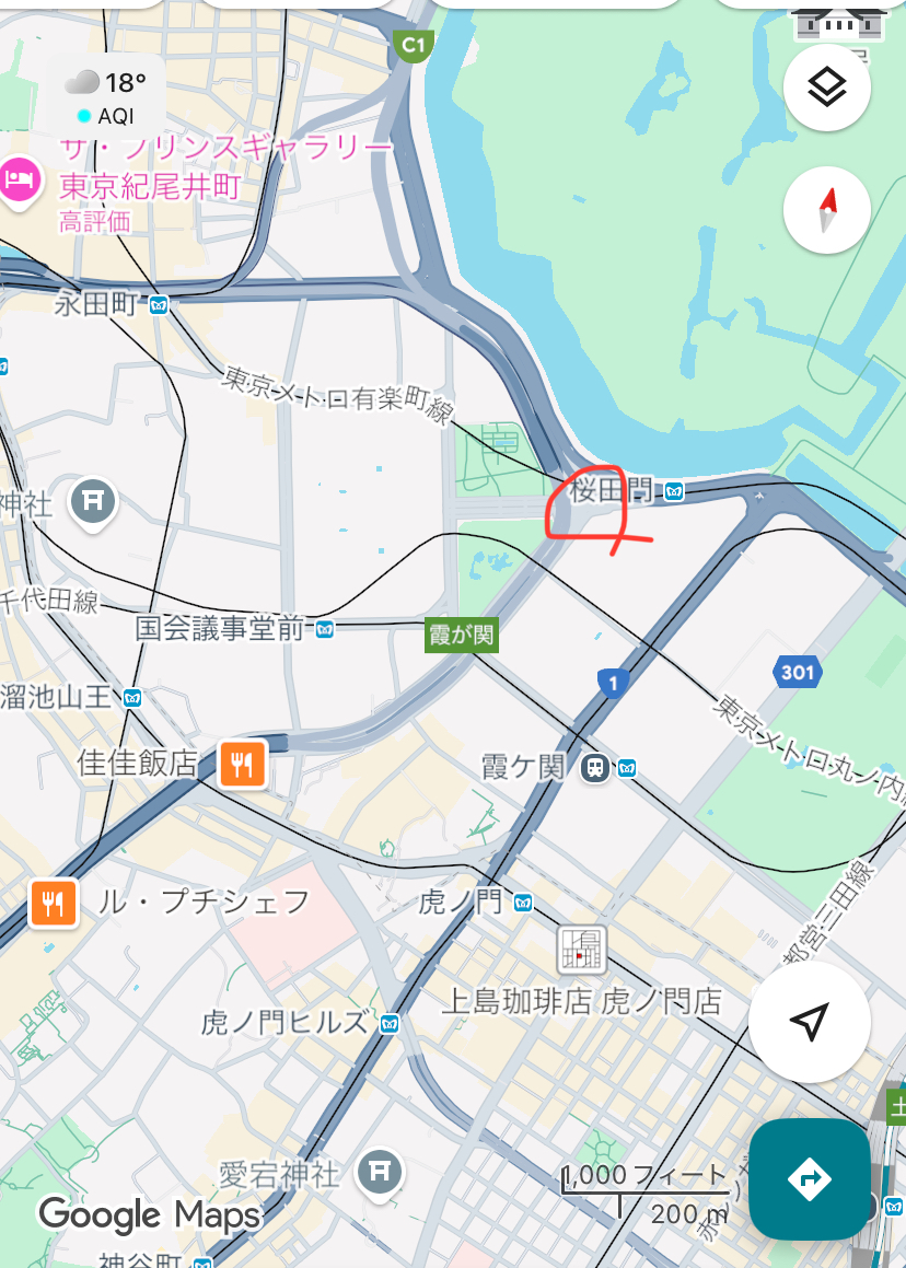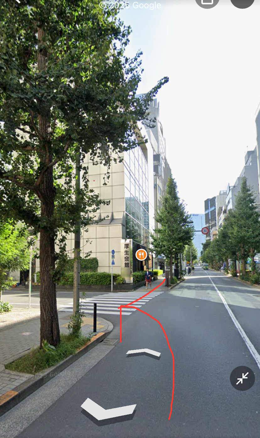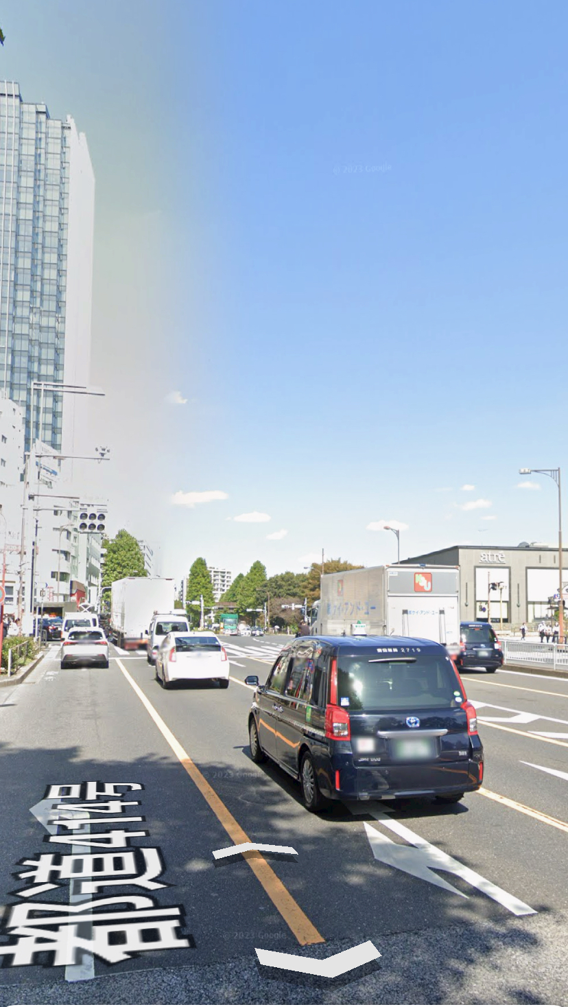 上記画像は、日比谷通りを芝公園側から御茶ノ水方面へ走っている様子ですが、この画像でいうと、