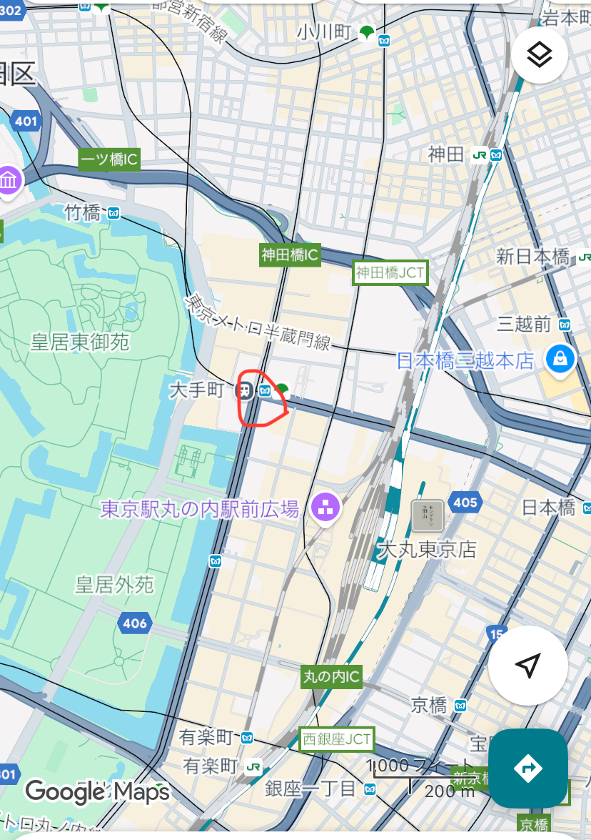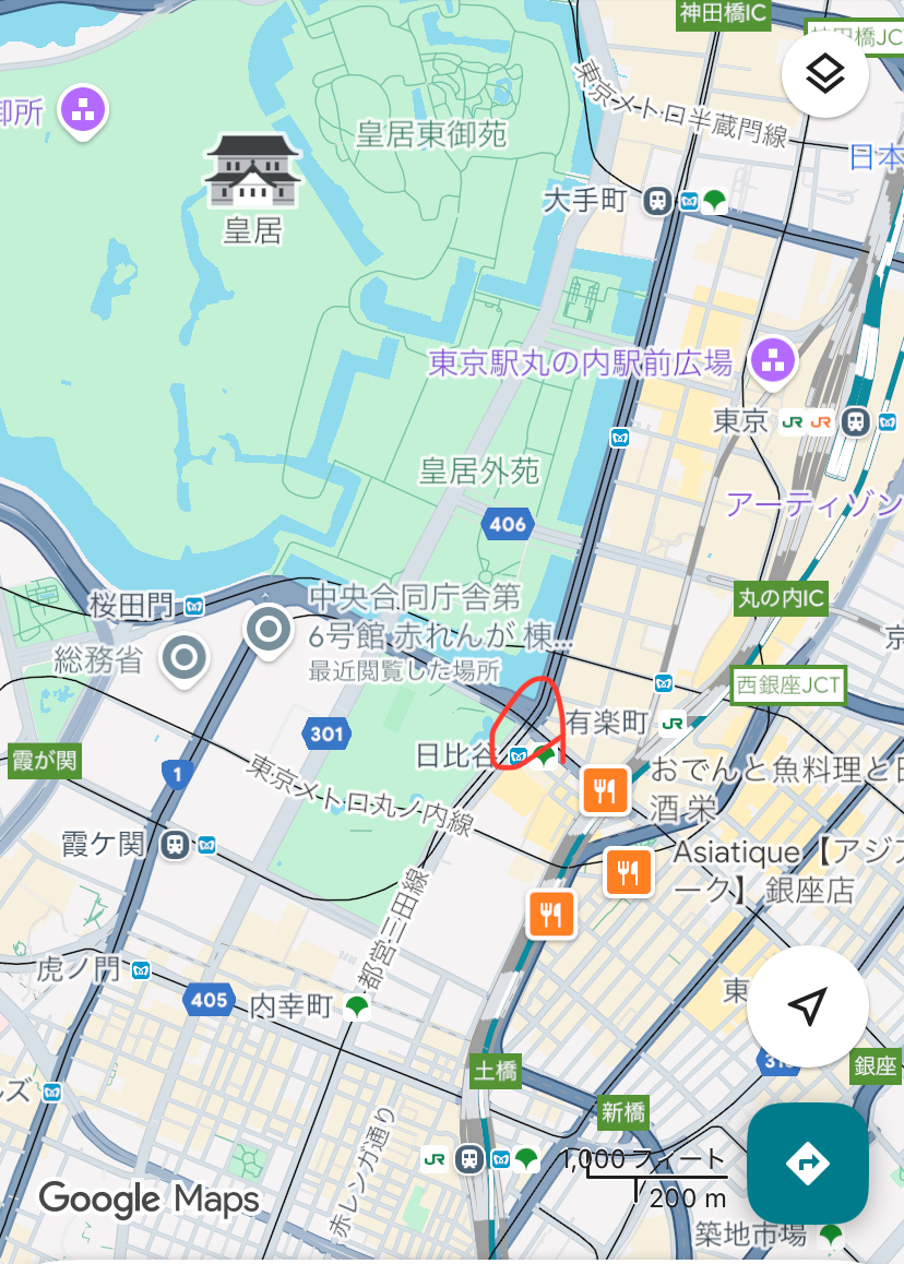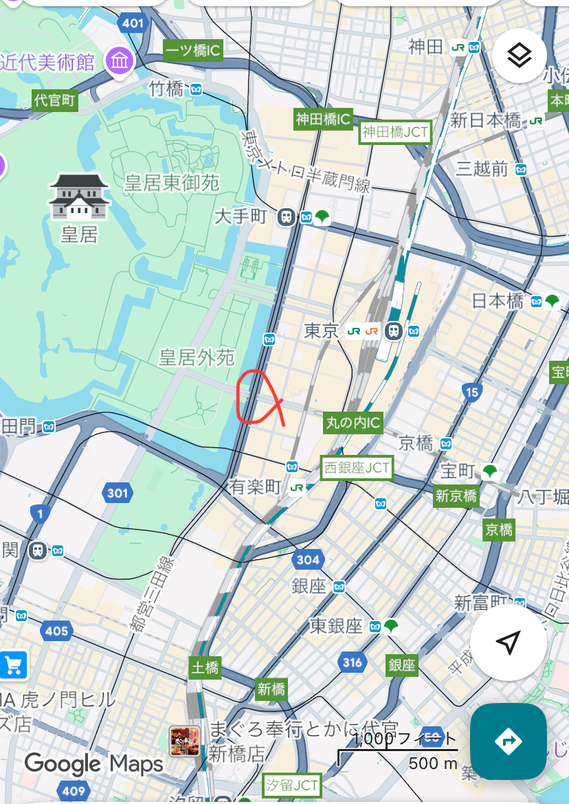 📌皇居前鍛冶橋線を皇居側から昭和通り方面へ走っているケース