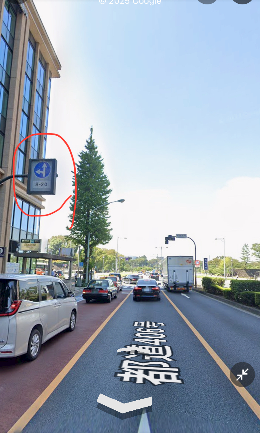 次に、皇居前鍛冶橋線を皇居側から昭和通り方面へ走っているケースです。