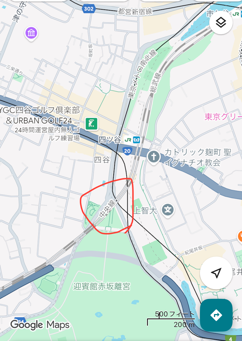 逆に、半蔵門側(上記画像右)から新宿駅方面(上記画像左)へ走っている場合、