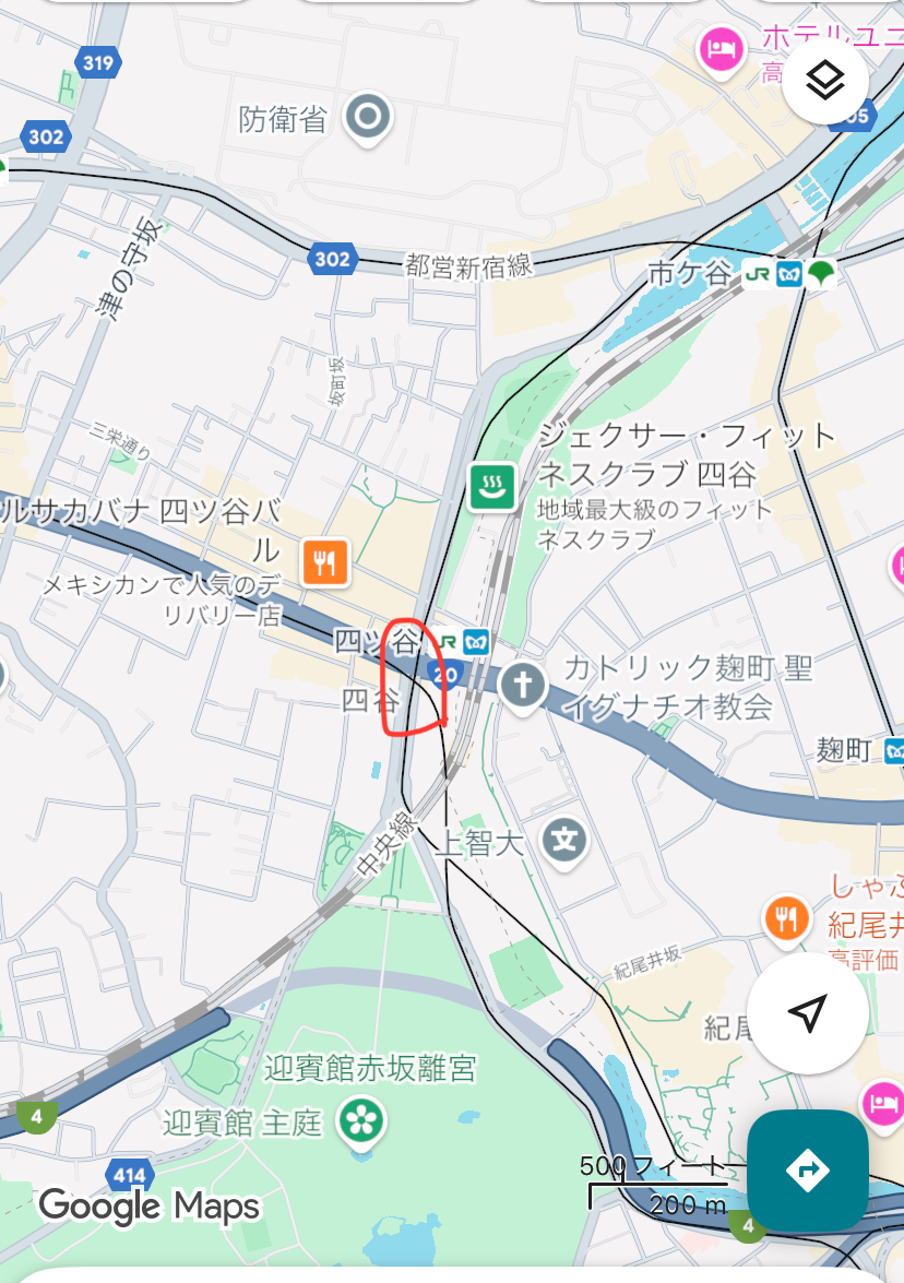 「四谷見附」交差点は、新宿通りと外堀通りが交わる交差点です。
