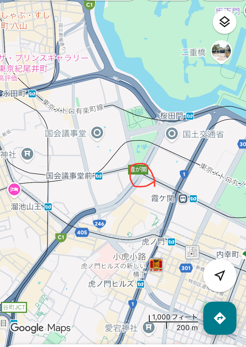 また、「財務省上」交差点は、「霞が関」で首都高を降りた際に最初にぶつかる交差点です。