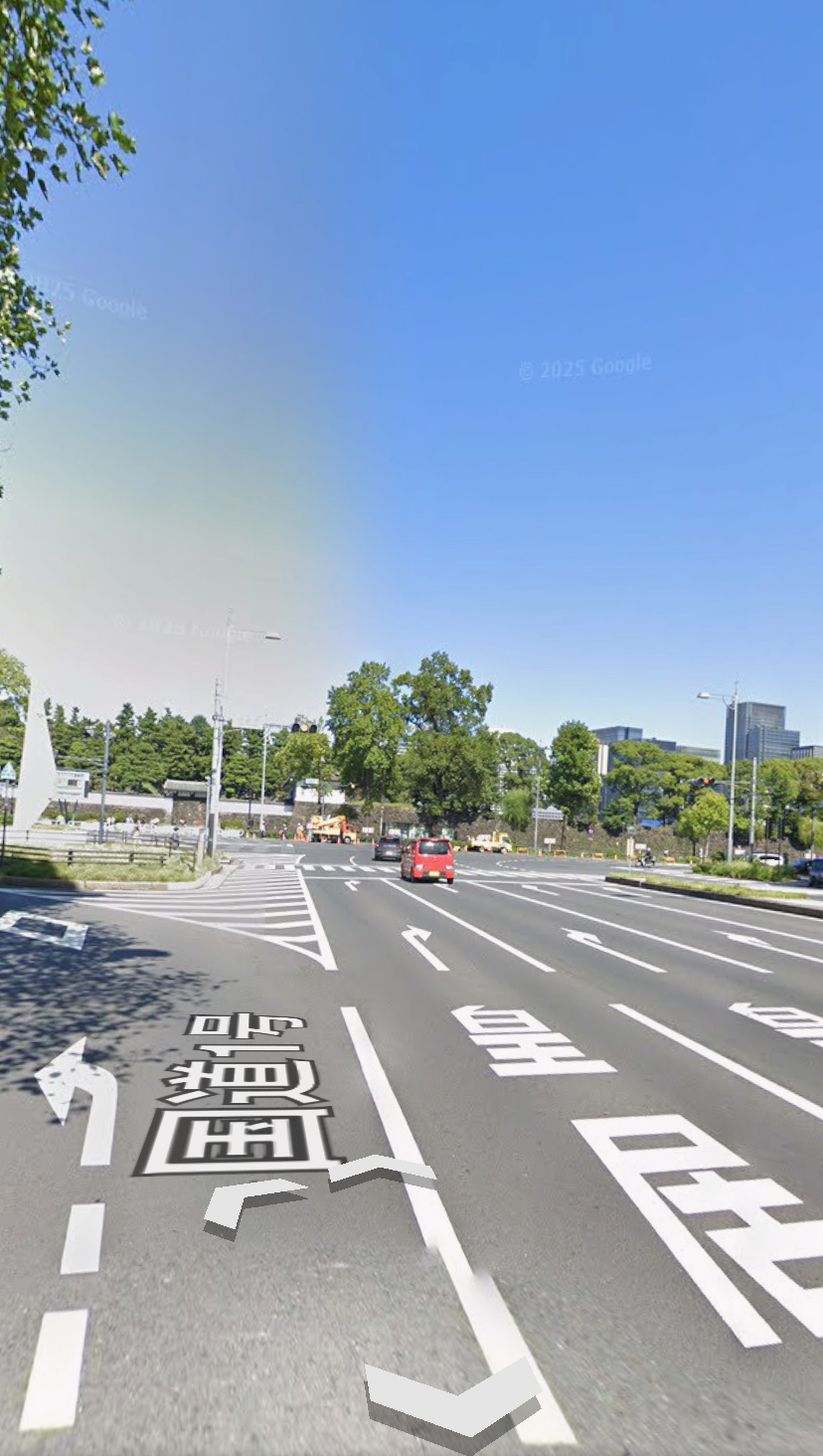 次に、馬場先通りを昭和通り側から皇居方面へ走っているケースです。