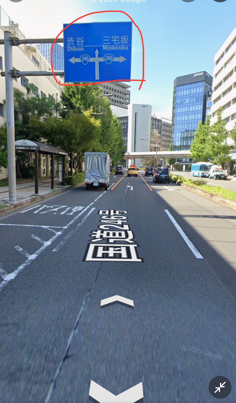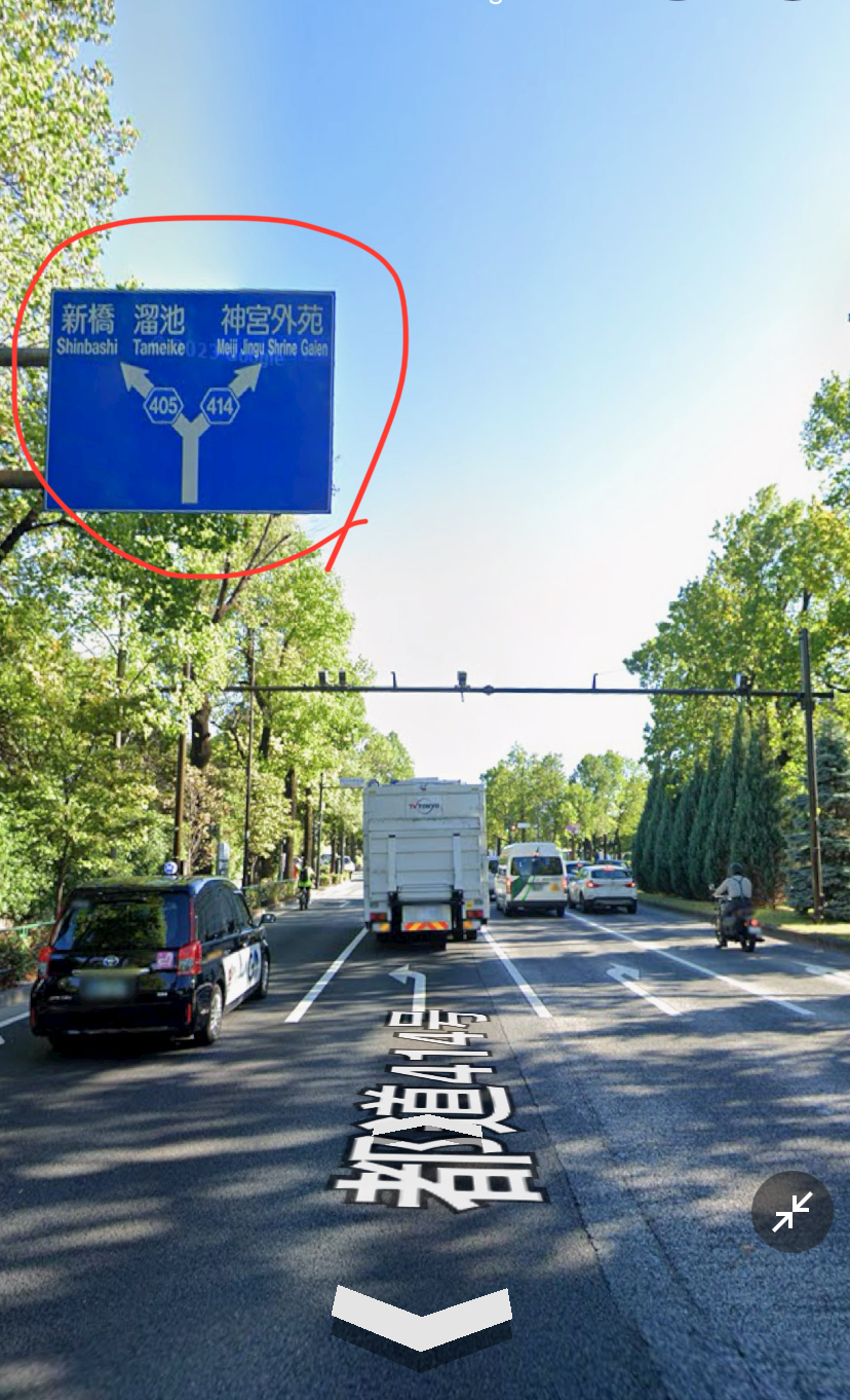 上記画像の青い看板のとおり、左2車線が溜池方面、右2車線が神宮外苑方面なのですが、