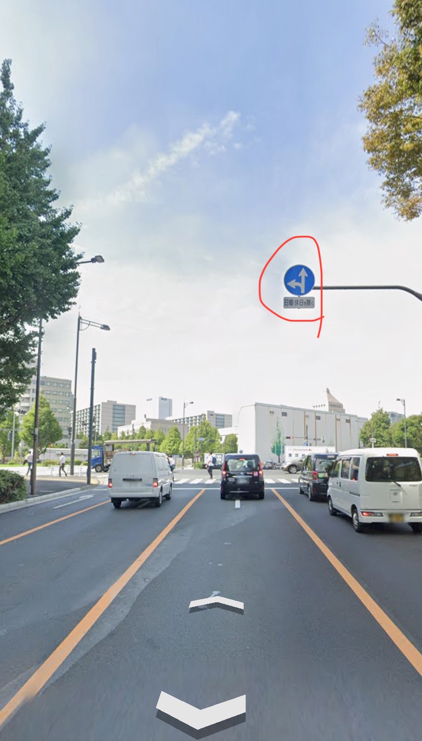 上記画像は、新宿通りを新宿駅側から半蔵門方面へ走っている様子ですが、この画像でいうと、