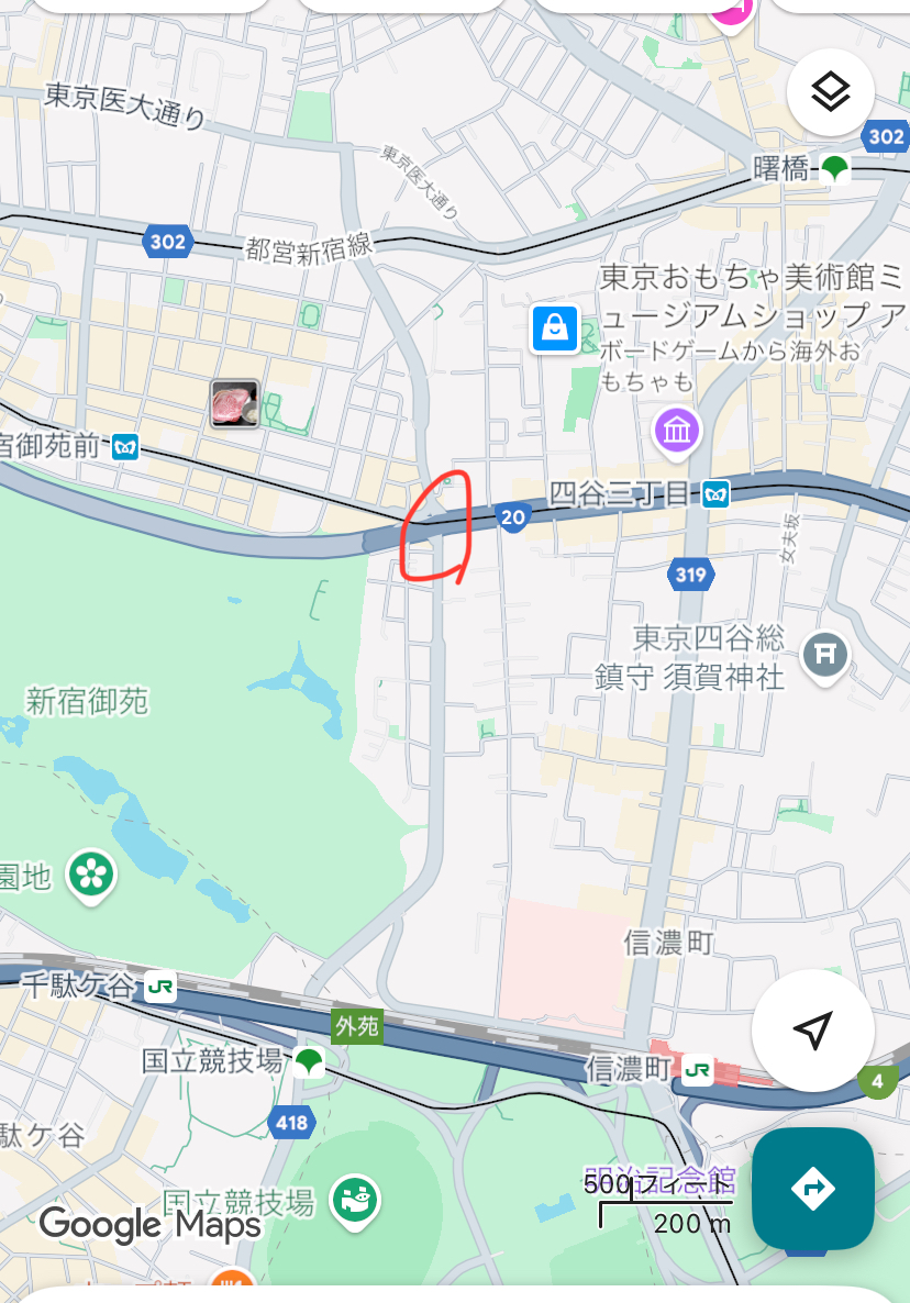 📌新宿御苑トンネルを抜けて「四谷四丁目」交差点に来たケース