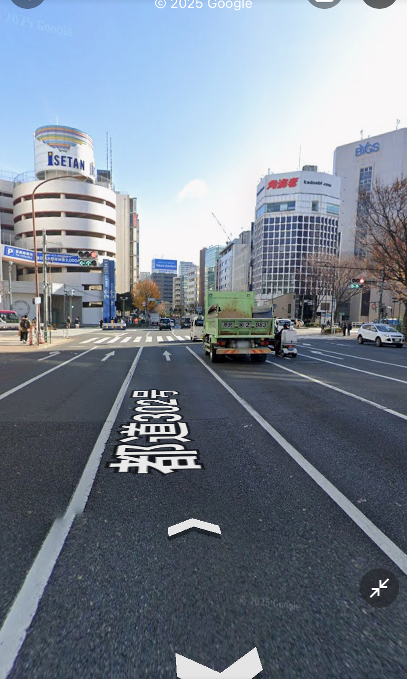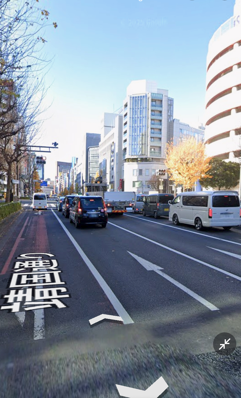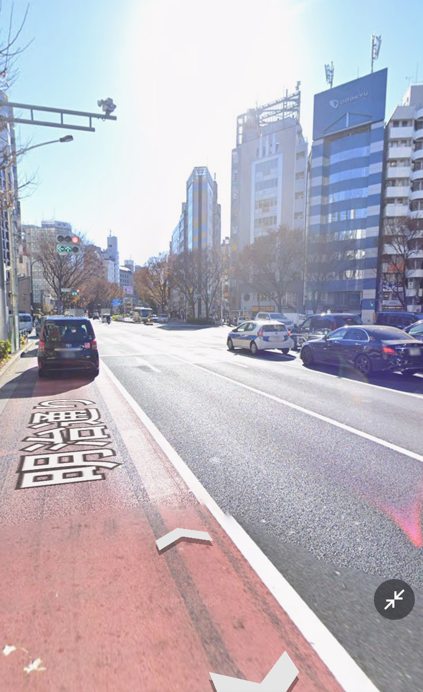 上記画像は、新宿通りを新宿駅側から半蔵門方面へ走っている様子ですが、この画像でいうと、