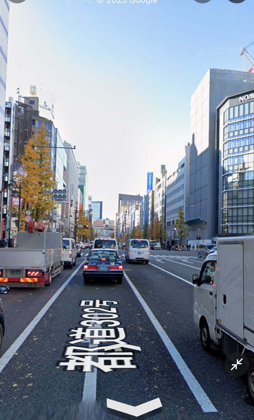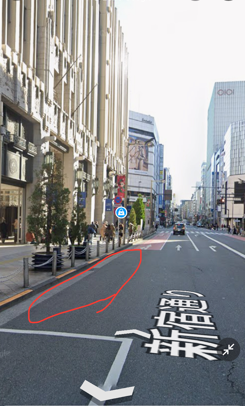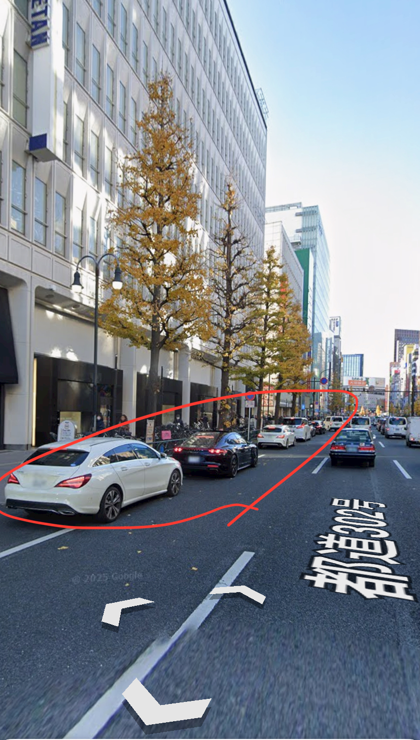 上記画像は、新宿通りを新宿駅側から半蔵門方面へ走っている様子ですが、この画像でいうと、