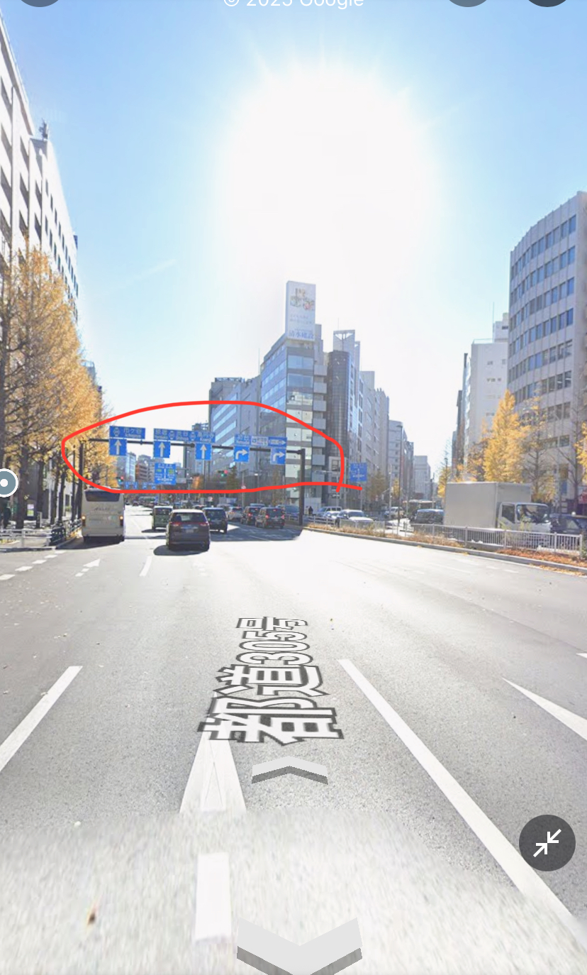上記画像は、靖国通りを九段下側から高円寺方面へ走っている様子ですが、この画像でいうと、