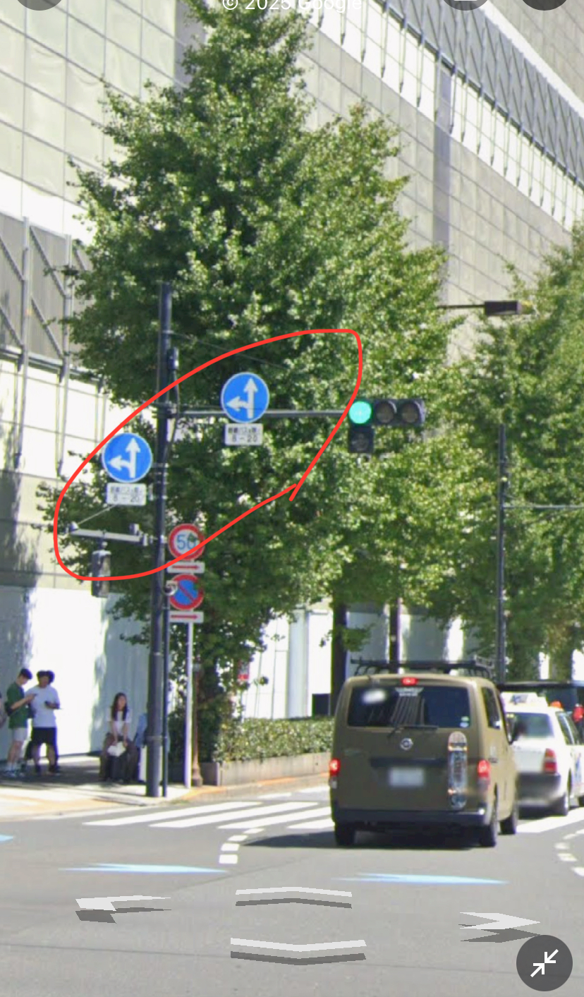 ❌外堀通りを東京駅側から走ってきて日比谷方面に右折したい