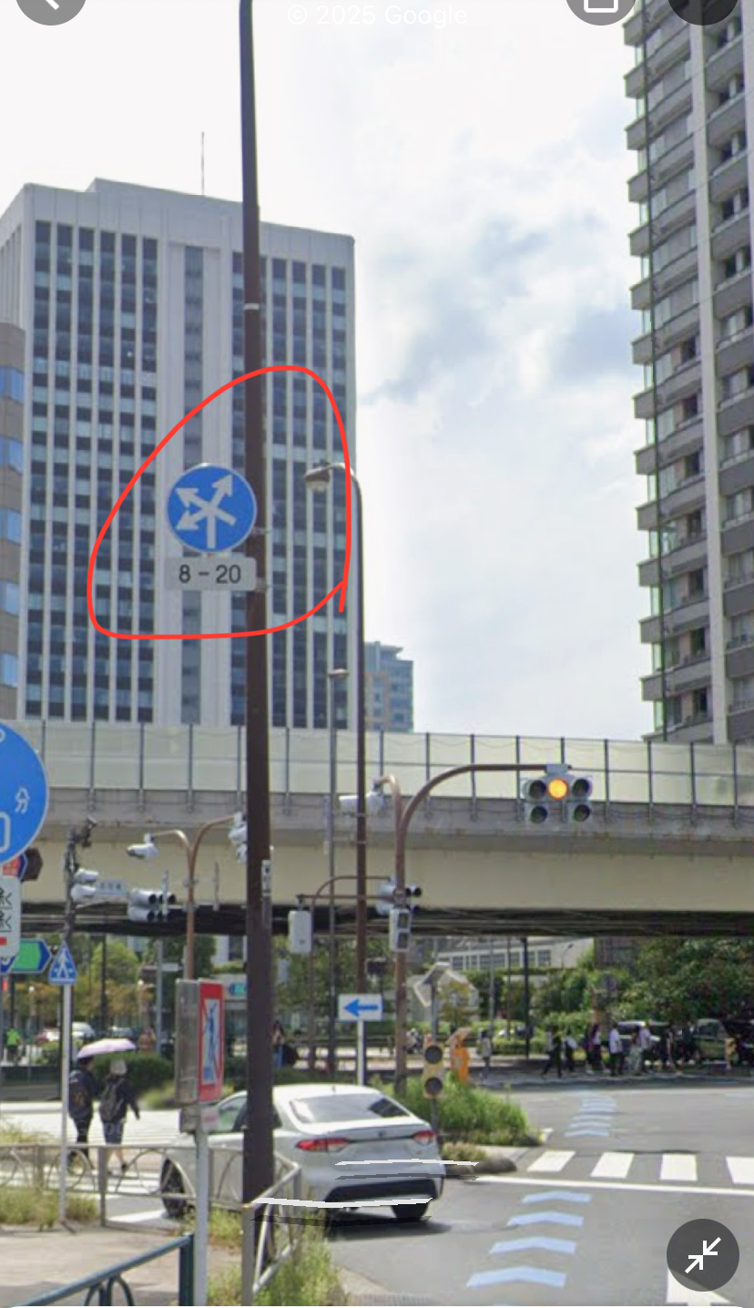❌外堀通りを新橋側から走ってきて勝どき方面に右折したい