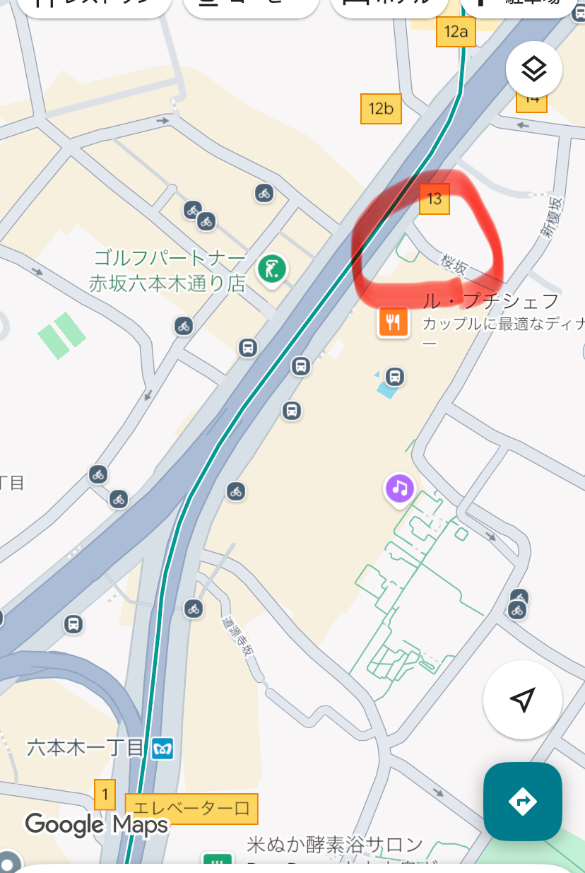 ✅「桜坂」から六本木通りに出る以下赤丸の横断歩道