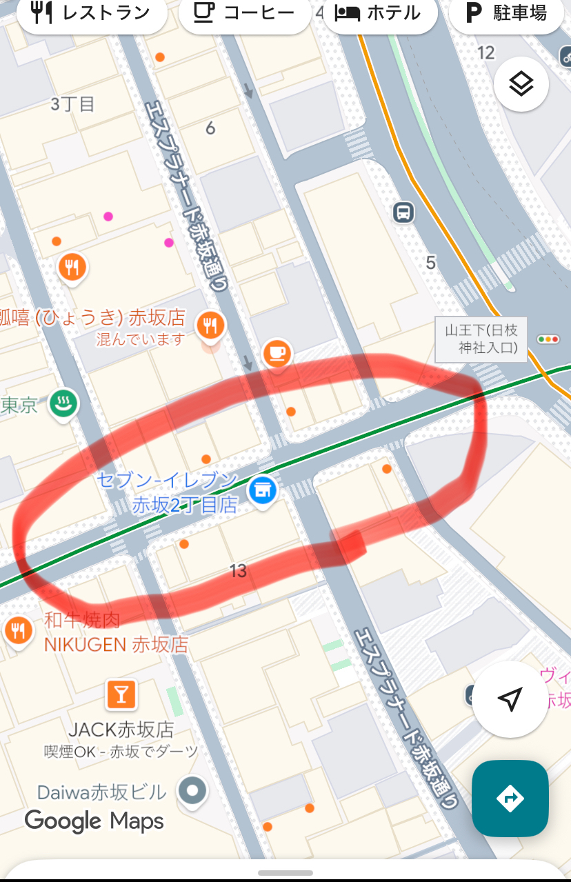 ✅赤坂通りの以下赤丸あたりの横断歩道